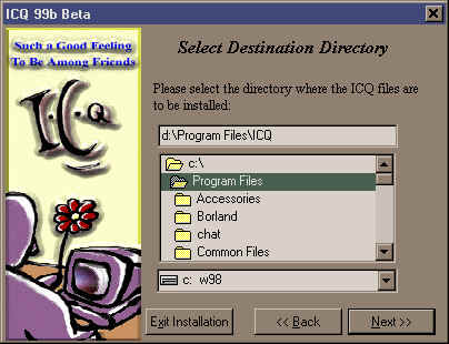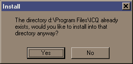 dizinde daha önce ICQ kurulmuşsa, şu uyarıyı alacaksınız: