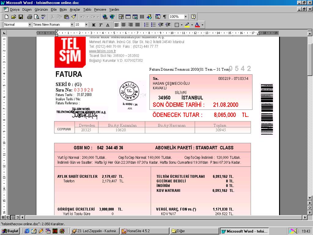 başardı.Tüm mükemmelliğiyle hazırladığı Telsim Faturasını size sunmaktan